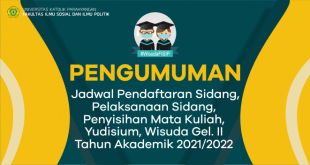PENGUMUMAN Jadwal Sidang, Yudisium dan Wisuda II 2021/2022 Dengan ini diberitahukan kepada seluruh mahasiswa Fakultas Ilmu Sosial dan Ilmu Politik Universitas Katolik Parahyangan, bahwa jadwal Sidang, Yudisium dan Wisuda II Semester Genap T.A 2021/2022, adalah sebagai berikut :